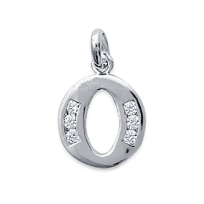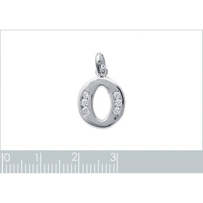 Pendentif initiale lettre "O" majuscule argent rhodié zirconium 13mm femme