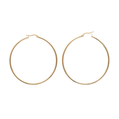 Nouveau Grandes créoles Acier doré jaune 60mm x 2mm