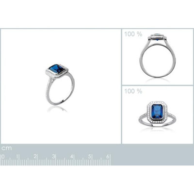 Solitaire carré femme - argent massif 925 rhodié - zircons sertis pierre bleue