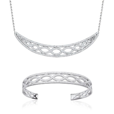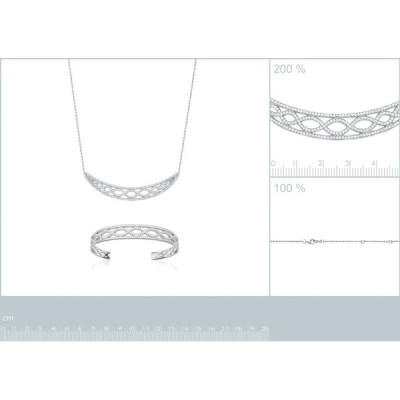 Nouveau Collier argent massif 925 rhodié et oxyde de zirconium micro serti longueur 45 cm