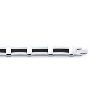 Bracelet pour homme en acier inoxydable avec caoutchouc noir longueur 21 cm - Brian