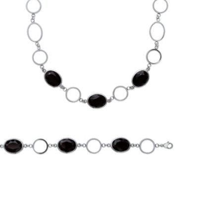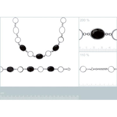 Bracelet pour femme en acier inoxydable avec imitation pierre noire longueur 19 cm - Amber