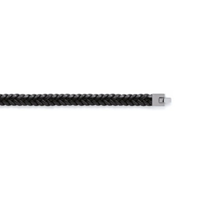 Bracelet pour homme en cuir noir tressé avec fermeture acier longueur 21 cm - Francis