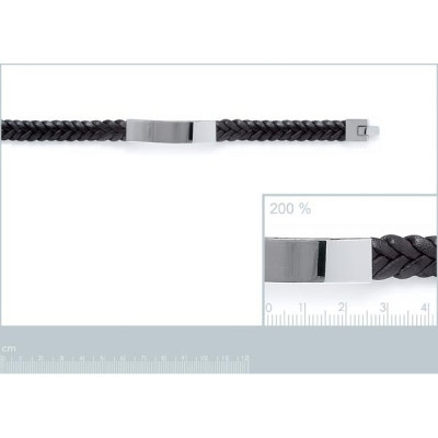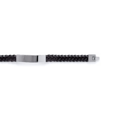 Bracelet pour homme en cuir noir tressé avec plaque acier longueur 19 cm - Harper