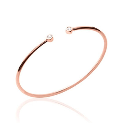 Jonc plaqué or 750 3 microns rose et oxyde zirconium diamètre 56 mm