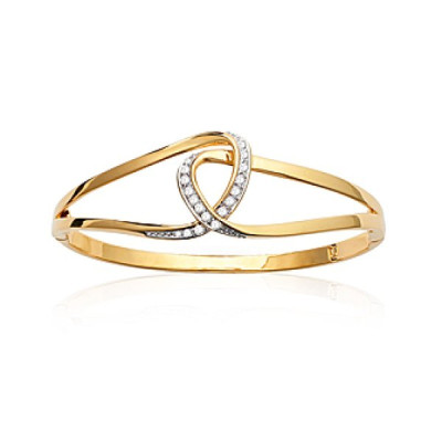 Nouveau Jonc plaqué or 750 3 microns bicolore et oxyde zirconium diamètre 62 mm