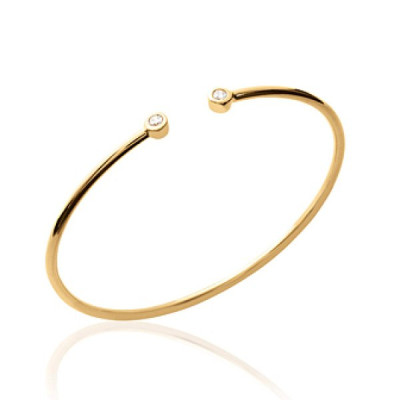 Nouveau Jonc plaqué or 750 3 microns et oxyde zirconium diamètre 56 mm