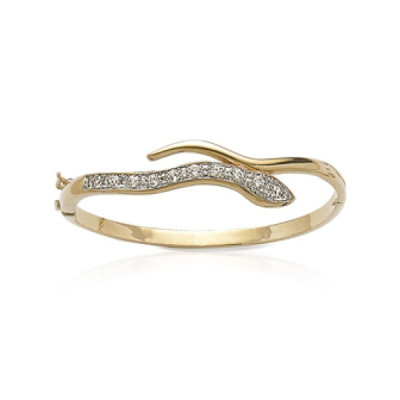 Nouveau Jonc plaqué or 750 3 microns bicolore et oxyde zirconium diamètre 62 mm