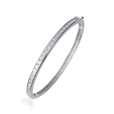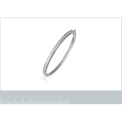 Nouveau Jonc argent massif 925 rhodié et oxyde de zirconium diamètre 60 mm