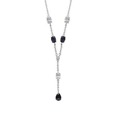 Nouveau Collier argent massif 925 rhodié et oxyde de zirconium longueur 42 cm