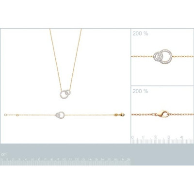 Bracelet plaqué or 750 3 microns bicolore et oxyde de zirconium micro serti longueur 18 cm