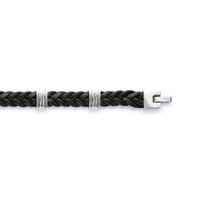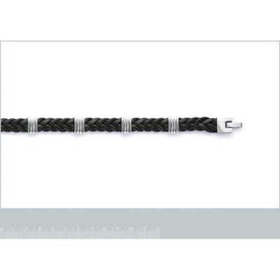 Bracelet pour homme en cuir noir tressé avec acier longueur 21 cm - Cesar