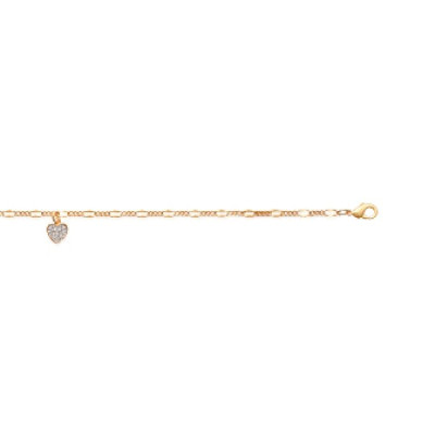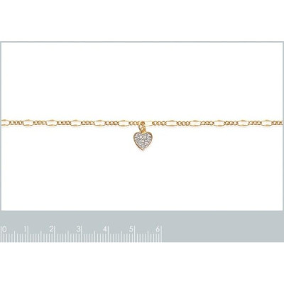 Chaîne de cheville Ines 25 cm plaqué or 750 bicolore avec coeur et zirconium