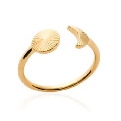 Bague ouverte femme - plaqué or jaune 18 carats - croissant de lune et soleil