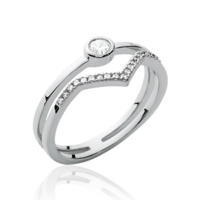 Nouveau Bague argent massif 925 rhodié et oxyde de zirconium