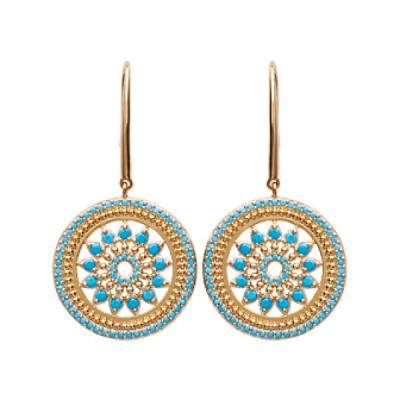 Boucles d'oreilles pendantes Plaqué Or Pierres imitation turquoises 40mm x 20mm