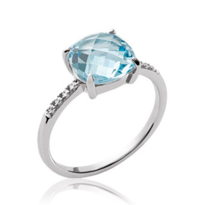 Solitaire femme - argent massif 925/1000 rhodié - gros zircon carré bleu ciel