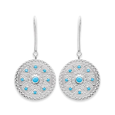 Nouveau Boucles d'oreilles 35 mm indienne aztèque - Liyah - argent rhodié - pierres bleu
