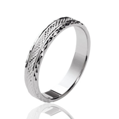 Bague alliance fiançailles gravée homme - argent massif 925 rhodié