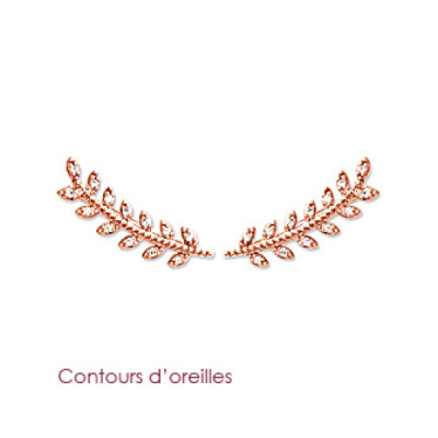 Boucles contours d'oreilles branches lauriers Plaqué Or rose crochets 21mm x 5mm
