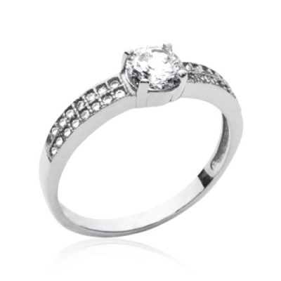 Solitaire femme - argent massif 925 rhodié - 2 rangs strass et zircon 4 griffes