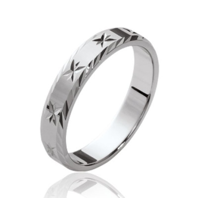 Alliance de mariage homme - argent massif 925 rhodié - gravures étoiles
