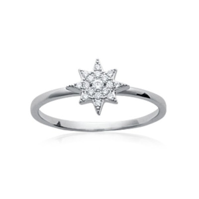 Bague soleil serti femme - argent massif 925/1000 rhodié - oxyde de zirconium