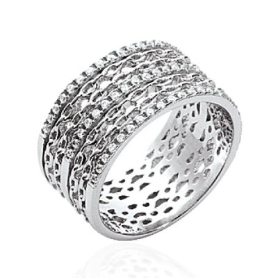 Bague tube femme - argent 925/1000 massif rhodié - zircons strass