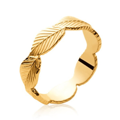 Bague alliance mariage feuilles femme - plaqué or jaune 750