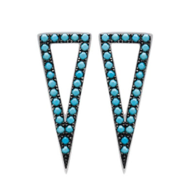 Boucles d'oreilles 20 mm triangle - Mona - argent rhodié - pierre bleu turquoise
