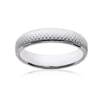 Bague alliance fiançaille homme - argent massif 925 rhodié - anneau bombé ciselé