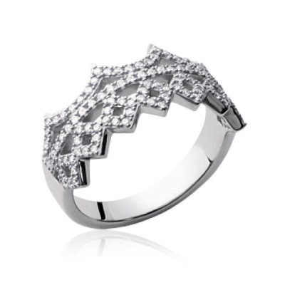 Bague couronne large femme - argent massif 925 rhodié - oxyde de zirconium