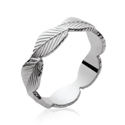 Alliance fiançailles femme - argent massif 925/000 rhodié - feuilles d'arbre