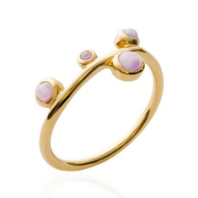Bague femme - plaqué or jaune 750 - pierres synthétiques roses