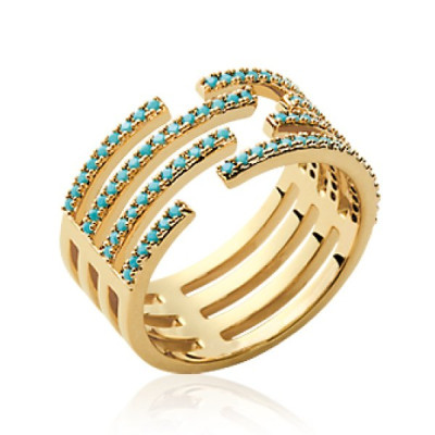 Bague 4 anneaux ouverts femme - plaqué or jaune 750 - pierres turquoises
