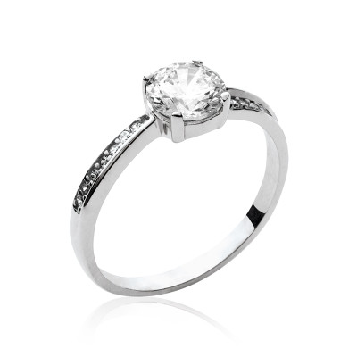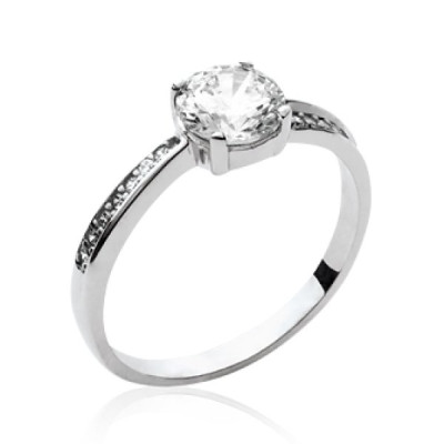 Bague solitaire empierrée femme en argent massif 925/1000 garanti