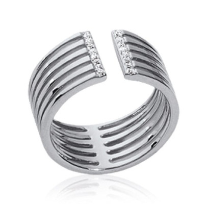 Bague ouverte six anneaux femme - argent massif 925/000 rhodié - zirconium