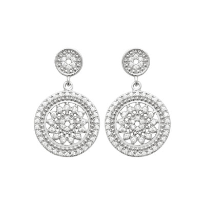 Nouveau Boucles d'oreilles pendantes soleils rondes Argent rhodié Zirconium