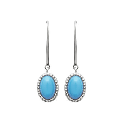 Boucles d'oreilles imitation turquoise Argent rhodié pendante crochet 30mm x 8mm