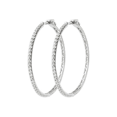 Boucles d'oreilles Créoles Argent 925 rhodié croisillons 50mm x 2mm