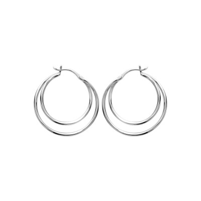 Boucles d'oreilles Créoles Argent 925 rhodié double anneau 28mm x 2mm