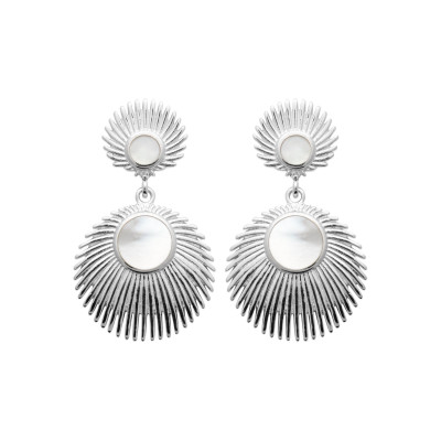 Boucles d'oreilles Nacre femme pendantes Argent 925 rhodié 30mm x 16mm tiges