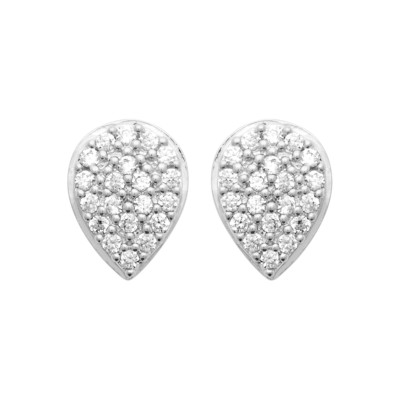 Boucles d'oreilles femme puces Argent rhodié gouttes inversées Zircons 8mm x 6mm