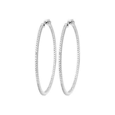 Boucles d'oreilles fines Créoles Argent 925 rhodié et Zircons 50mm x 1mm