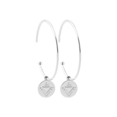 Créoles Argent rhodié médaille pendante triangle 35mm x 25mm x 10mm