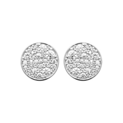 Boucles d'oreilles puces rondes femme Argent 925 rhodié et Oxyde Zirconium 10 mm