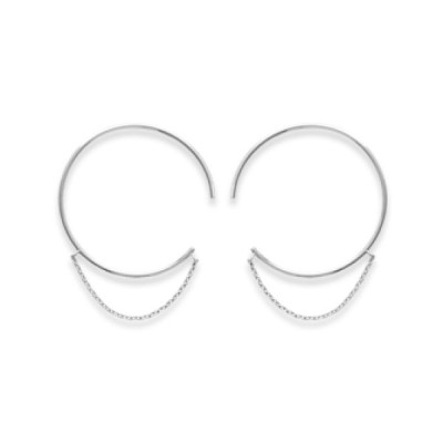Boucles d'oreilles Créoles Argent rhodié chainette peandante 35mm x 25mm