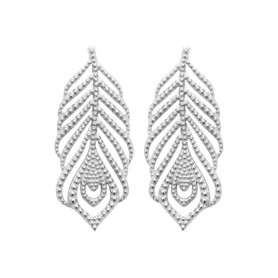 Boucles d'oreilles pendantes Argent 925 rhodié femme plumes 20mm x 8mm