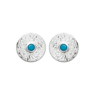 Boucles d'oreilles 11 mm rondes disque Pierre bleu turquoise Argent rhodié puces