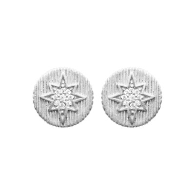 Boucles d'oreilles Argent 925 rhodié 9 mm rondes rayures étoiles et Zircons puces